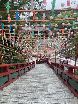 本殿に上がる階段には、現在夏の風物詩『風鈴』がたくさん飾られ、軽やかな音に涼を感じました。