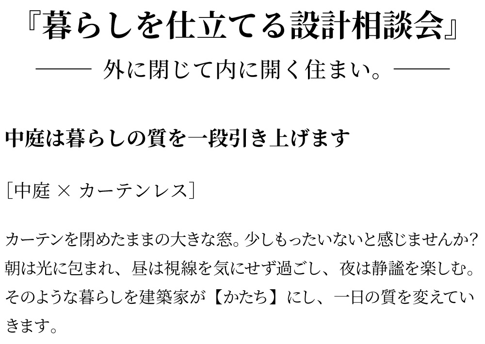 【2/14-23】外に閉じて 内に開く住まい。暮らしを仕立てる設計相談会
