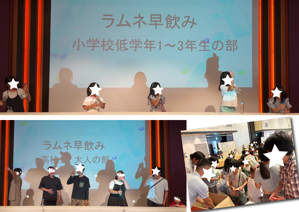 感謝祭では、毎回大盛り上がりのラムネ早飲み大会や