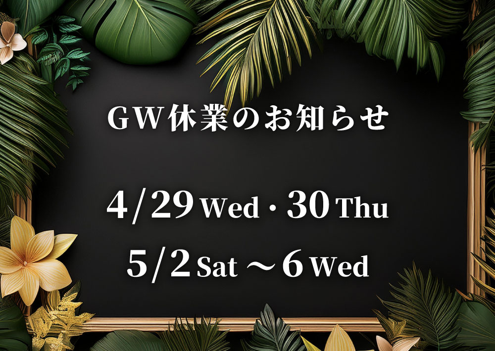 【お知らせ】GW期間の休業日のお知らせ